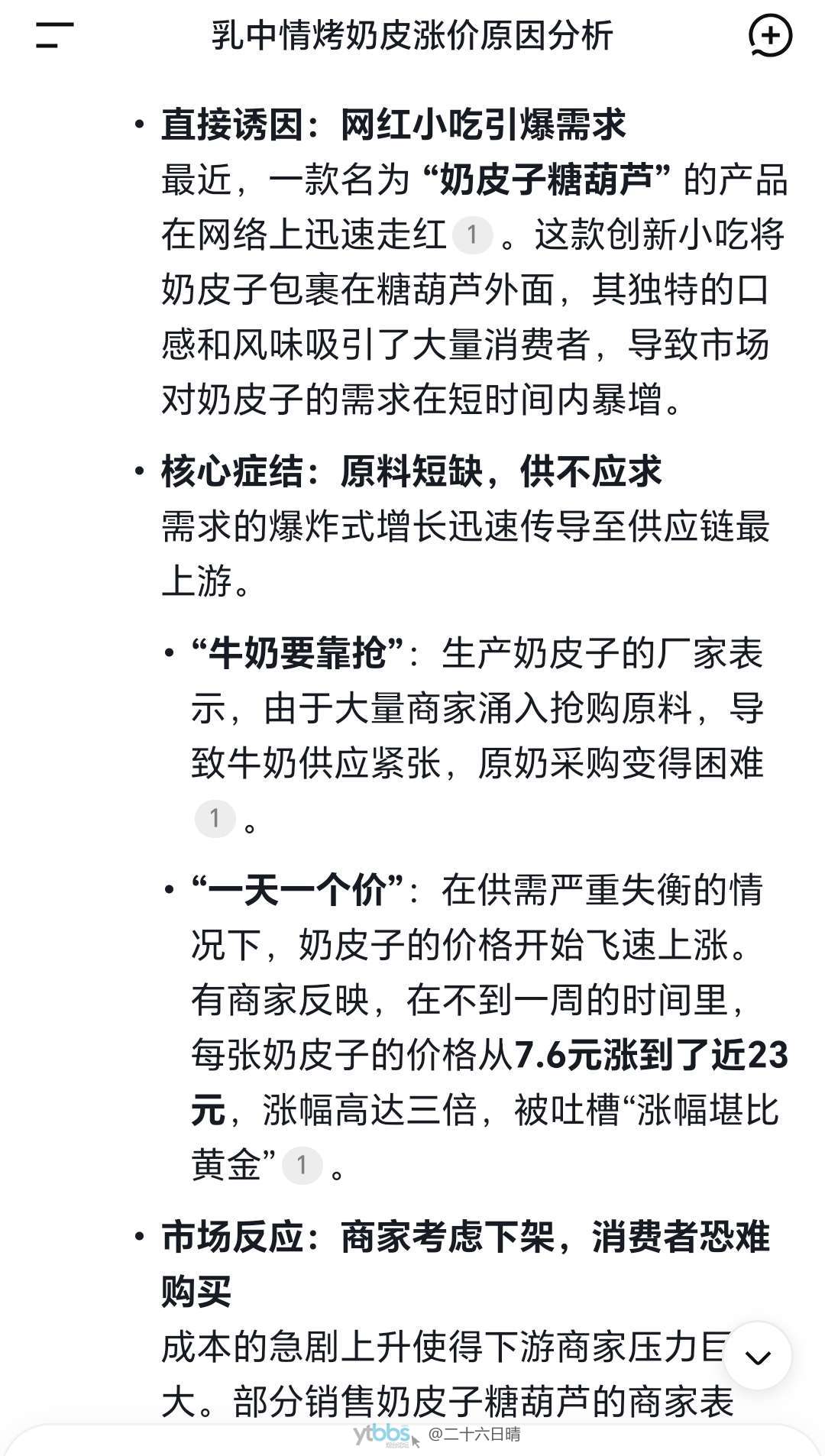 ×î½üÃÔÉÏÁËÄÌÆ¤×ÓÁãʳ£¬Ö®Ç°ÅÝËáÄ̳ԣ¬ºóÃæÖ±½Ó¸É³Ô£¬ÄÌζ·Ç³£Å¨Óô£¬Ô½³ÔÔ½Ïã¡£±¾´òËã¸Ï×Å˫ʮһ¸úÆäËû¶«Î÷´Õ×ÅÂòЩ£¬Ã»Ï뵽ǰһÌìÉÏÍø¿´»¹ÊÇÁË54¿éǮһ½ï£¬µÈµ½µÚ¶þÌì¿´¾Í±ä³É108¿éÒ»½ï¡£»¹ÒÔΪÊǼ۸ñ¸ã´íÁË£¬ÓÖÈ¥¸úÉ̼ÒÈ·ÈÏÒ»±é¡£Õâ¼Û¸ñÕǵÄʵÔÚ¹ýÓÚµã·è¿ñ£¬Á¬»Æ½ð¶¼Ã»ÕÇÄÇôÀ÷º¦¡£ÉÏÍø²éÁËÒ»ÏÂÔÒò£¬ÔÀ´ÊÇ×î½üÍøºìÄÌÆ¤×ÓÌǺù«ºÜÊÜ»¶Ó£¬µ¼ÖÂÄÌÆ¤×ÓÐèÇóѸËÙÔö³¤£¬Ô´Í·²ÄÁϹ©²»Ó¦Ç󣬼۸ñÒ²¸ú×ÅË®ÕÇ´¬¸ß£¬¼¢¶öÓªÏúËãÊDZ»ËûÃÇÍæÃ÷°×ÁË¡£ÒòΪ¸Õ¿ªÊ¼ÕǼۣ¬¸Ï½ôÕÒÁËÁ½¼Ò»¹Ã»À´µÃ¼°ÕǼ۵ĵêÆÌ¶ÚÁËÒ»²¿·Ö£¬ÎÒÕâÒ²ËãÊÇÄÌÆ¤·ÛµÄµÚÒ»ÅúÊܺ¦È˰É
